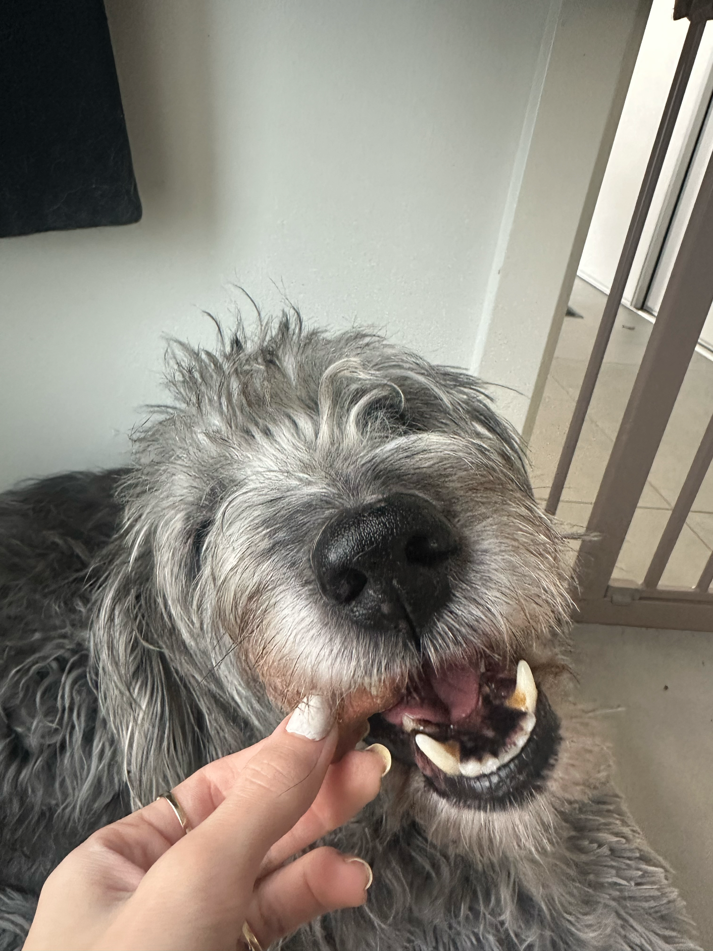 Jeg har en lille hidsig hund, som ikke er specielt begejstret for andre hunde, men Melanie var så god og satte sig ned med godbidder og vupti så kunne min hund med hendes hunde 😮